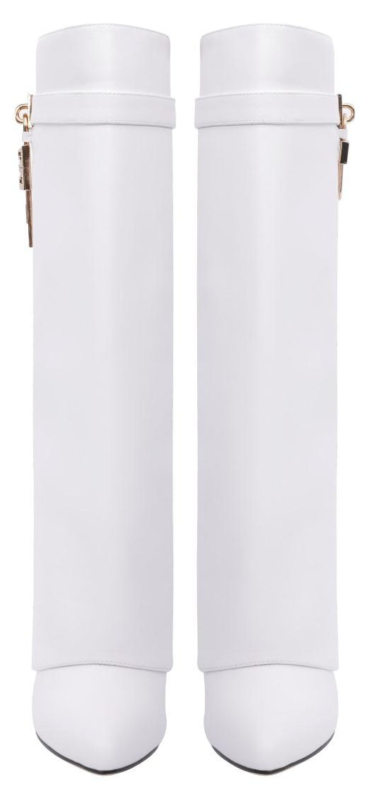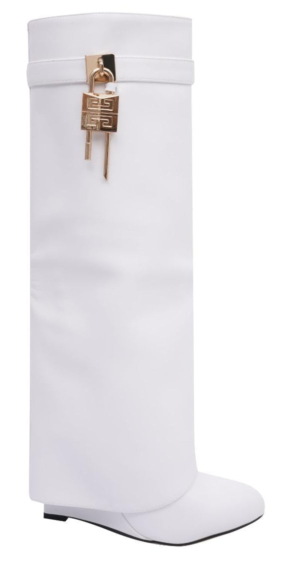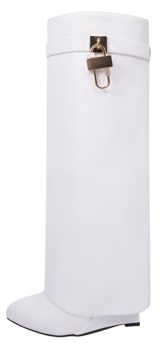 Osez affirmer votre style avec ces bottes hautes au design unique. Leur silhouette épurée, habillée d’un tissu texturé, est sublimée par un cadenas métallique signature qui attire le regard et apporte une touche de sophistication.