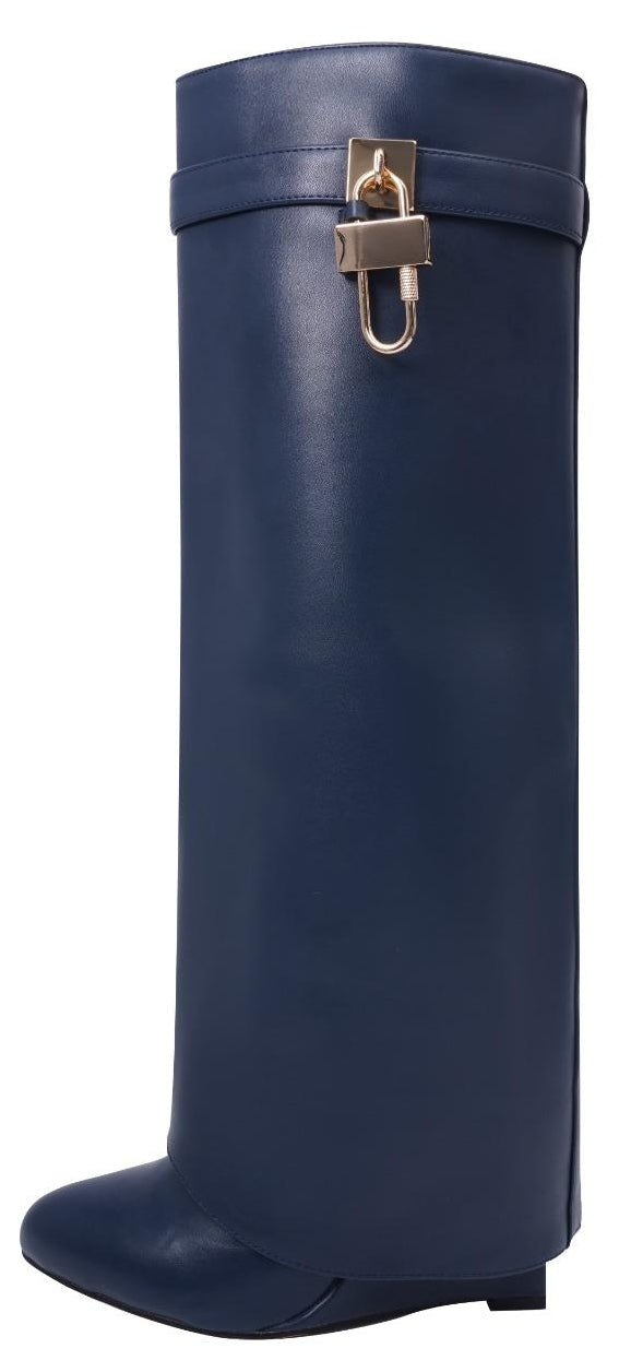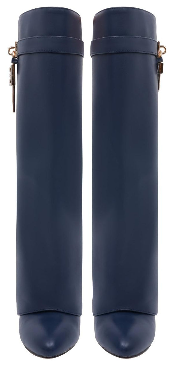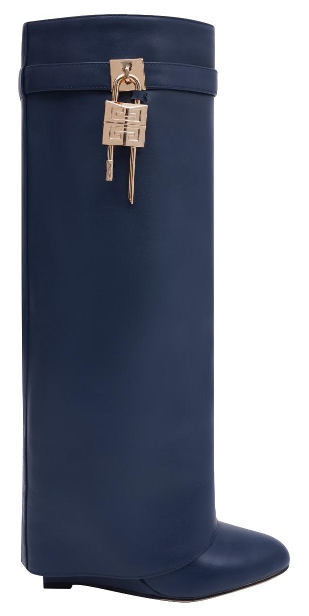 Osez affirmer votre style avec ces bottes hautes au design unique. Leur silhouette épurée, habillée d’un tissu texturé, est sublimée par un cadenas métallique signature qui attire le regard et apporte une touche de sophistication.